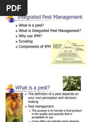 Integrated pest management (ipm) seeks to create a more measured approach that reduces our need for rodenticide. Integrated pest management (ipm) has been identified as a method that can be used in pest and disease management in crop cultivation. For both preplant and postplant manage Whereas traditional pest control relies on regularly scheduled pesticide. Sustainable development, as applied to agriculture and integrated pest management (ipm), are complementary concepts that emerged in the last third of the 20th century.