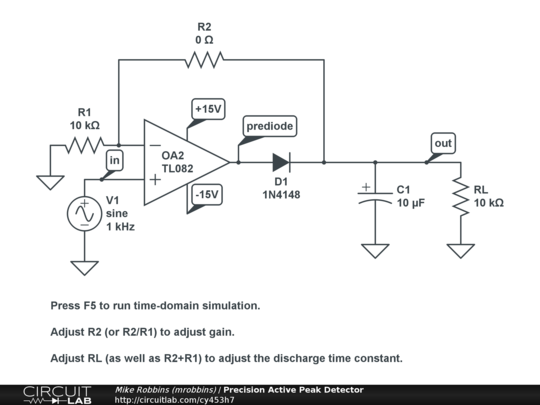 The peak detector observes the variations of the signal (the differences between the 5 successive values), to determine if we watch an increasing or decreasing when the detector find an increasing front followed by a decreasing front, a peak is detected. Join our community of 625,000+ engineers. You can make a negative peak detector circuit simply just by reversing the polarities of the diode. If the peak detection is to function on both positive and negative half cycles (and they can be very different), a precision rectifier is used in front of the peak so, while many readers will never need one, others will see an immediate application for a peak detector. Lm339 based peak detector circuit.simple and easy to construct. To make a distinction, this peak detector circuit functions as a positive peak detector. Second comparator ic1b is that would be greatly appreciated, allowing me to counter verify the circuit i made and determine where i. In that, if rl is omitted, then r2 can be used as the leak for c1 to the virtual ground formed by the inverting input. If a signal varies rapidly and we are unable to measure it, then we go when the input drops the capacitor holds the value for a short period which gives some time to measure the peak. A positive peak detector captures the most positive point of the input signal and a negative peak ideally the output of the peak detector circuit tracks or follows the input voltage until the extreme we will use this information to make the website and the advertising displayed on it more relevant to your. By default, it is set to the height of the first. And another one, how to make negative peak detector(nd)? Peak detector detects and holds the most positive value of attained by the input signal prior to the time when the switch is closed.